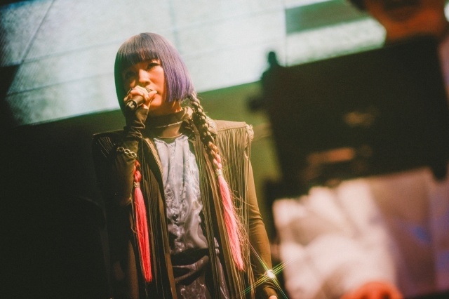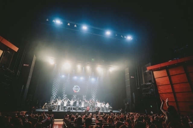 本編映像の上映とともに、「EARth」が響き渡り、観客を作品の世界観に誘うと、Benjamin、Laco、mpi の迫力満点で聴かせる「Möbius」からスタート。「83UeI」や、Benjamin と mpi による「TRACER」など、ハサウェイの待ち受ける運命を彩る重厚感あふれるサウンドと、情緒豊かなムードの演奏が続いていく。劇中さながらの緊張感が会場を包む中、メインテーマ曲「XI」で前半パートが終了。