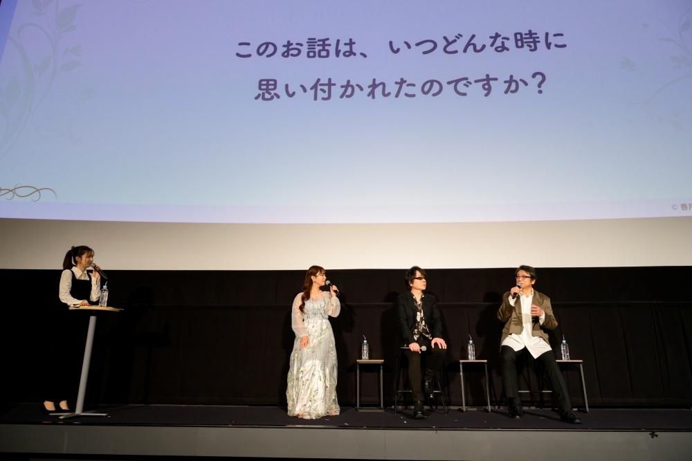 司会の読売テレビアナウンサー西尾 桃さんに、キャストとしてファンの前に立つのは、2024年1月の朗読劇以来であることを伝えられると、速水さんが満員のファンを見渡し、「女性の方がほとんどかと思ったのですが、男性の方もたくさんいらしてくれていて、嬉しいですよね」と語り、井上さんも「嬉しいです」とそれに賛同。ファンが広がり続けていることを喜んでいた。