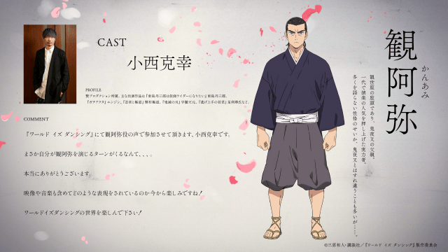 『ワールド イズ ダンシング』にて観阿弥役の声で参加させて頂きます、小西克幸です。まさか自分が観阿弥を演じるターンがくるなんて、、、。
