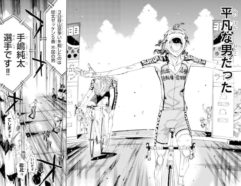 体格に恵まれた葦木場がバイクを投げ出してゴールしようとしたのに対し、手嶋さんは最後まで必死にペダルを回し続けて、まさに「努力」で勝ったところが最高でした!初めて漫画のページを捲る手が震えました。