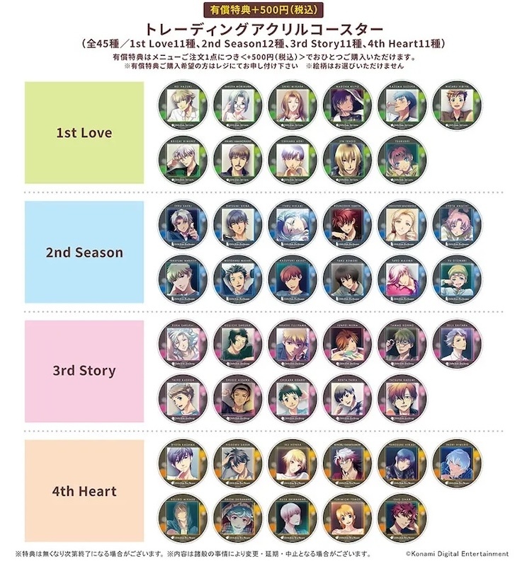 トレーディングアクリルコースター(全45種/1st Love11種/2nd Season12種/3rd Story11種/4th Heart11種)