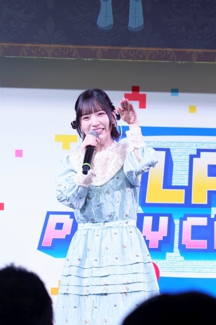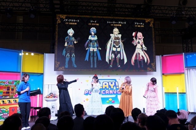 ステージの幕開けとともに会場を包んだのは、作品の世界観を象徴する重厚なファンタジーBGM。しかし、その音色に導かれるように登壇した4人の中で、奈波さんが開口一番、「すごい音楽だけど、もっとポップなステージなのにね(笑)」と冷静にツッコミ。ゲームセンターをイメージした今回のブース設定とのギャップを即座に拾い、会場を一気に和やかなムードに引き込みました。