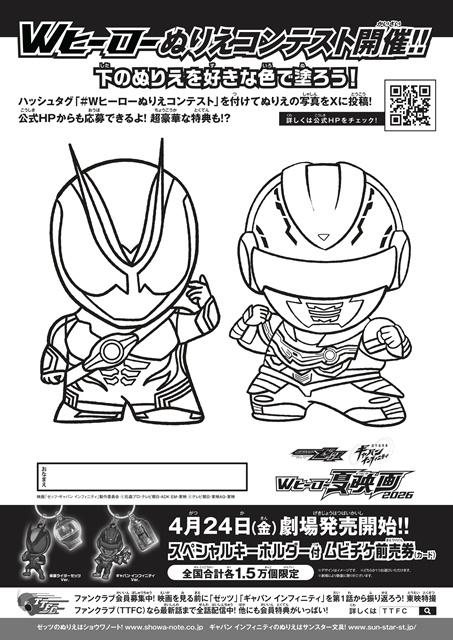 昨年に引き続き、「Wヒーローぬりえコンテスト」を開催します!