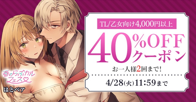 【春のらぶカルフェス】TL/乙女向け4000円以上40%OFFクーポン