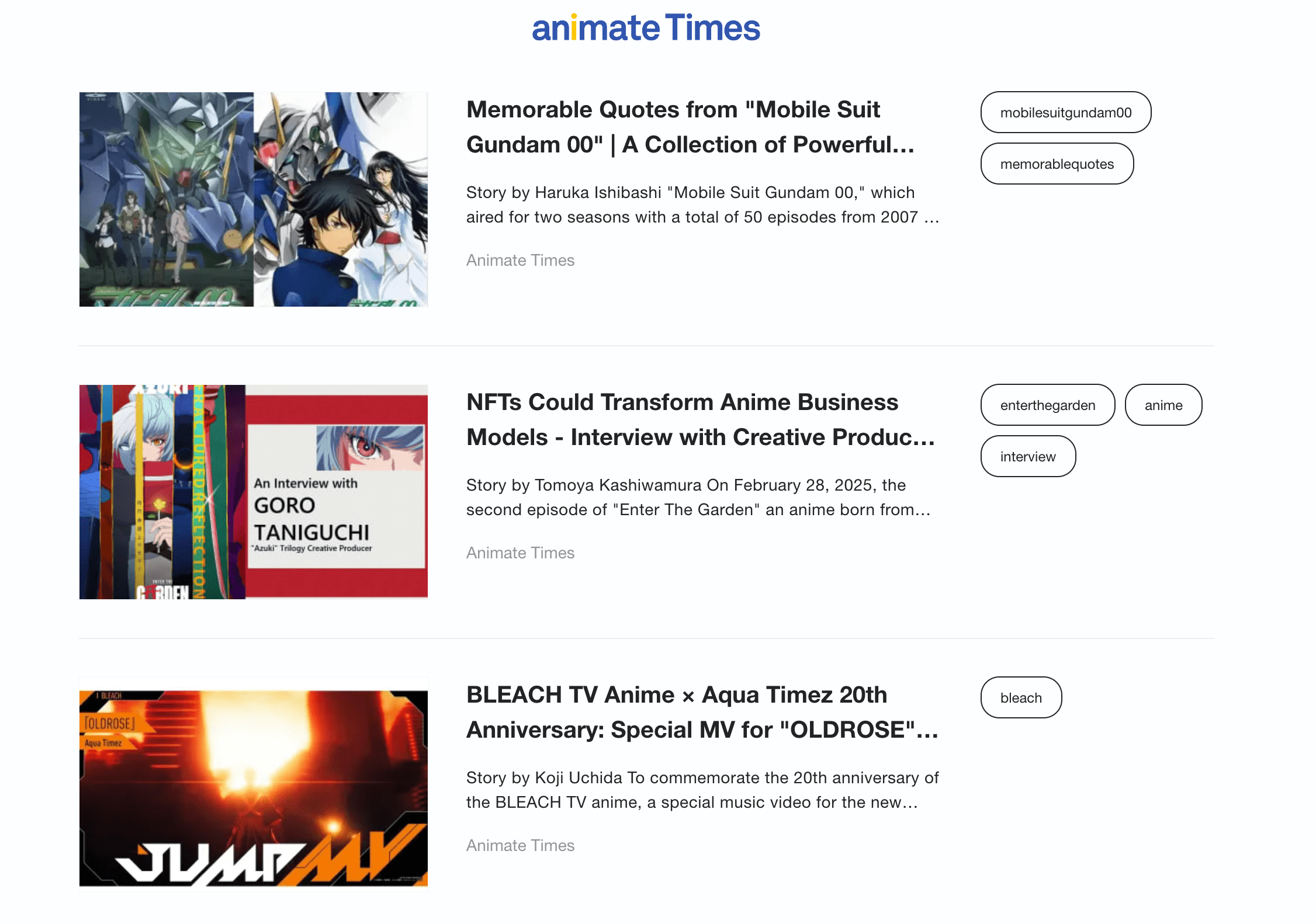 Recency: Animate Times provides publication and update dates for articles, informing readers of the newness of the content they are consuming. These dates are clearly displayed at the top of all content.