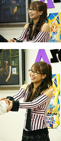 そんな彩音さんだが、「美少女ゲームアワード2008」主題歌賞・金賞を受賞。活躍に対する評価も高まりつつある。式典に出席した彩音さん。普段とは違う厳粛な雰囲気のなかで歌唱すると、スーツ姿の出席者が手拍子してくれたというエピソードなどを披露。受賞の楯はブログにUPするとのことで、これも要チェックだ。