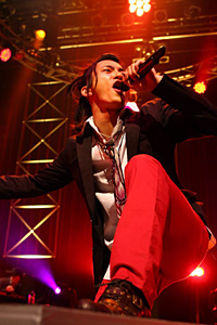 クール&セクシーな歌声や仕種のもと、ステージ前方に設置されたお立ち台に上がり、華麗なアクション交じりにスリリングな楽曲「Paradiso」を歌いあげてゆく中河内。続くハートフルな風をそよがせた「In the sky」でも、会場中の人たちが温かな空気を身に抱きながら、一体した雰囲気を作りあげていた。