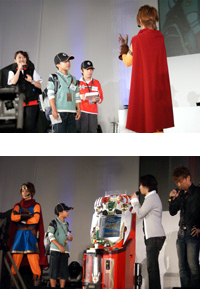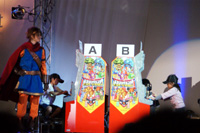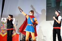 会場となるメインステージでは、カードを使用したゲーム『ドラゴンクエスト モンスターバトルロード』の第3回王者決定戦・小学生大会が開催された。全国で予選を戦い抜いた8名の少年少女が、公式サポーター・勇者カイトが見守る中、舞台に登場。そして対戦用に繋げた2台の筐体が2組用意され、“レディファイト!”のかけ声と共に、バトルがスタートしたのだった。