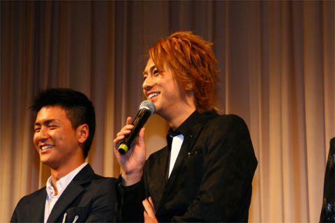 “佐藤さん”達が見守るなか、ステージに登場したのは、主人公・佐藤翼役の石田卓也さんをはじめ、翼の妹・佐藤愛役の吉永淳さん、佐藤洋役の三浦翔平さん、佐藤明役の蕨野友也さん、佐藤美沙役の渡辺奈緒子さん、そして監督・脚本の柴田一成氏。また後半にはテーマ曲を歌うHigh Speed Boyzも登場。豪華メンバーで完成をファンと祝った。