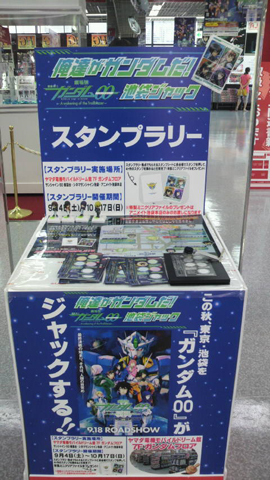 スタンプ拠点は、サンシャイン60展望台、ヤマダ電機、シネマサンシャイン池袋、アニメイト池袋本店の4箇所。駅の構内ポスターからヤマダ電機の大型ビジョンでの予告編上映、映画館の柱も00でジャックされており、スタンプラリー各所にはスタンプのキャラに応じたプラモデルの展示もある。