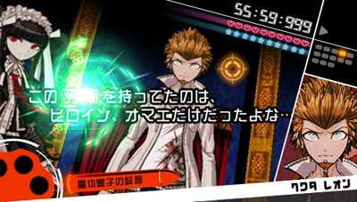 『ダンガンロンパ希望の学園と絶望の高校生』とは、殺人事件の真相を暴くため、議論の場である学級裁判でアクションを駆使して相手を論破する、新感覚のゲームだ。本作で制作元のスパイクは、推理アドベンチャーとアクションを掛けあわせた新ジャンル「ハイスピード推理アクション」を開拓。ハイスピードで展開する学級裁判の議論中、飛び交う生徒たちの主張から矛盾点を見出し、捜査パートで集めてきた証言や証拠を弾丸に見立て撃ち込み、論破する。