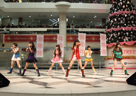 人気6人組アイドルユニット、ももいろクローバーが、今月10日に2ndメジャーデビューシングルで、キングレコード移籍第1弾シングル「ピンキージョーンズ」(TVアニメ「ヨスガノソラ」EDテーマ)を発売したのを記念して16日、東京・池袋のサンシャインシティ・アルパ噴水広場前で「アイドル桶狭間 池袋の陣~いざサンシャイン~」と銘打った新曲イベントを行った。