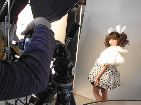 撮影は午前中からスタート。準備のために、着々とメイク完成させるまいにゃは今日も元気一杯!!メイクさんやカメラマンさんとも親しげに会話を持つ和やかなムードのなかでも、いざ撮影がスタートすると一転してキリリと本気モードに。カメラの前でくるくると表情やポージングを変えるまいにゃの姿に、スタジオ中から「カワイイ~!」「お人形さんみたい~!」と絶賛の声が飛び交っていた。