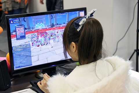 ゲーム内の振り付けに合わせて、自分でも体を動かしながらPCの前で「楽しいー!」と大はしゃぎ!