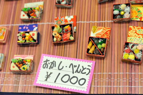 ミニチュアのお弁当シリーズ。この他、ホールケーキやロールケーキなどスイーツシリーズも。見れば見るほどリアルなのに、ほぼすべてが3cm四方と言う細かさ!