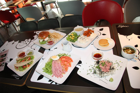 まず渋谷PARCOの1階に『カラフィナ・カフェ』をオープン! メンバー考案の新メニューを日替わりで提供。自身で考案した新メニューについて解説してもらうと、「一人1品とKalafinaメニューを考えました。『私はギョーザじゃないよ。タコスだよ。上手に食べれるかな』という長い料理名で(笑)。おうちでも作っていてトルティーアまでこだわってます」(Wakanaさん)、「私は『秋の冷やし中華』。夏に食べそこなった方はここで(笑)。あとKalafinaメニューは3人共、揚げ物が好きなので唐揚げと私が好きなパンケーキも付けて盛りだくさんになってます」(Keikoさん)、「私はネギトロ丼と味噌汁。3rdアルバムに『マグノリア』という曲があったので(笑)」(Hikaruさん)。