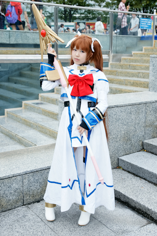 引き続き、2011年10月15日・16日、水道橋の東京ドームシティで開催された大規模コスプレイベント“コスプレフェスタTDC”会場で見かけたコスプレイヤーさんたちを紹介! 画像は『魔法少女リリカルなのは』シリーズよりCN:襟川さんの高町なのは。(撮影:中里キリ)