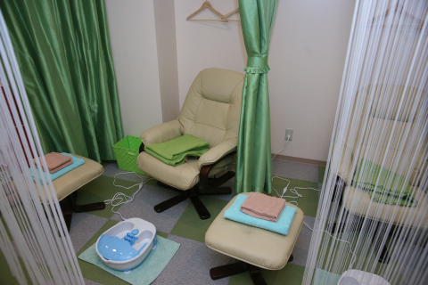 気を取り直して4階は、「神リフレ」。その名の通り、ヘッドスパ、フットスパなどのリフレクソロジーサービスが受けられる。基本は30分ごとに4000円の「神コース」で、押しメン指定1000円、アイドルスタッフさんのちぇき撮影1000円などのオプションもある。どんな雰囲気か気になる人は、初回限定で10分1000円のおためしサービスを受けてみるのもよさそう。と、ここで、入口の券売機に気になる文字が。“特別神コース”って? 「スタッフが2人で同時に施術させて頂くコースになります」とのこと! こちらはお値段も倍で、30分8000円。うーん、ボーナスやお給料日のあとは、桃源郷に浸ってみてもいいかも!?