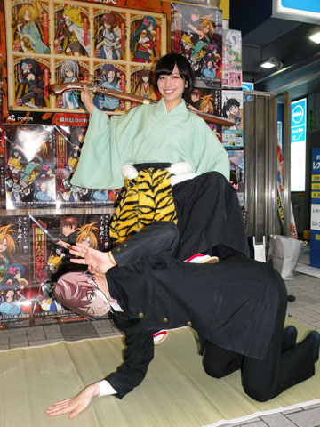 イベントの第1部は「良晴体験イベント」。この作品の主人公、相良良晴は、タイムスリップして戦国時代に来てしまい、そこで「織田信長」ならぬ「織田信奈」と出会い、信奈にいきなり足蹴にされてしまうのだが、そのシーンを体験するイベントである。