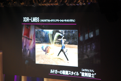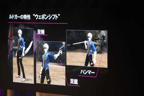 戦闘システムは前作を踏襲した「XDR-LMBS(クロスダブルレイドリニアモーションバトルシステム)」を採用。今回のイベントでは、ルドガーの戦闘スタイル「銃剣槌士」が公開された。彼は「ウェポンシフト」という特性をもち、双剣・双銃・ハンマーの3つの武器を使い分けて戦うことができる。ムービー内では、戦闘中に武器を瞬時に切り替えて敵を攻撃する、爽快感溢れる演出が写し出されていた。