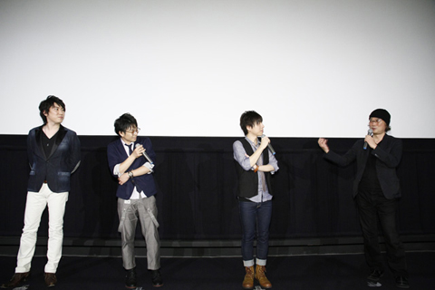 『宇宙戦艦ヤマト2199 第二章・太陽圏の死闘』が2012年6月30日(土)より上映開始されました。上映初日の新宿ピカデリーでは出渕裕監督と、通信管制を担当する船務科士官・相原義一役の國分和人さん、宇宙気象観測と進路情報の伝達を行う航海科士官・太田健二郎役の千葉優輝さん、兵器の運用を担当する戦術科士官・南部康雄役の赤羽根健治さんが登壇しての舞台挨拶が行われました。