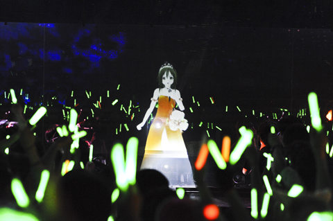 また、ライブをネットの生放送で楽しむユーザーのために、配信映像にリアルタイムでCG映像を合成させる「AR(Augmented Reality:拡張現実)」と呼ばれるシステムを導入。ネット視聴しているユーザーは、カメラで撮影した会場の映像+キャラクターCG映像を合成させた「ARライブ」を視聴できるようになった。