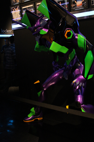 ニコニコカーと共に、2メートルのエヴァ初号機が全国キャラバン。行き先については、「神のみぞ、知る」とのこと! なお、会場ロビーには、そのエヴァ初号機が展示されていました!
