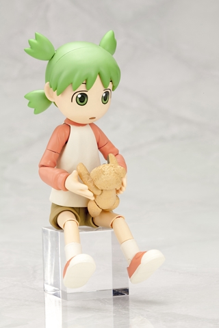 今回発売される「小岩井よつば」は、『よつばと!』のちょっとかわった女の子「小岩井よつば」をプラキット化。各部に組み込まれた関節により、走ったり座ったり、愛嬌あるポーズをとらせることができる。手首は握り手、平手、開いた平手、シャボン玉器(小)持ち手、シャボン玉器(大)持ち手、カメラ持ち手を付属。腰部は差し替えで座った状態のパーツが付属しているため、よつばを安定して座らせらせることができる。そのほか、よつばを再現するのに重要なクマ「ジュラルミン」は、PVC可動フィギュアにて再現。付属されている「肩掛け鞄」にジュラルミンを収納することもできる。塗装済みの顔パーツ5種と、未塗装の顔パーツ2種で、愛らしいよつばの喜怒哀楽を自分なりに表現しよう。さらに、多数の「表情デカール」を未塗装の顔パーツに使って自分だけの表情を作ることもできるのだ。