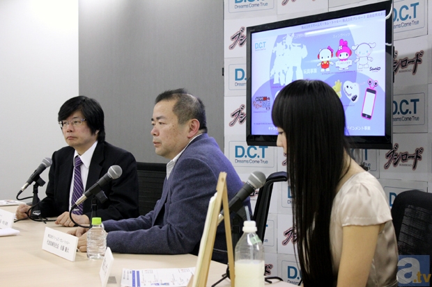 今回の発表会には、ドリームズ・カム・トゥルー 佐藤慶太社長、ブシロード 木谷高明社長が、今後の業務展開の流れを紹介。
