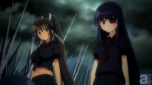 霧夜が様子を見に行くが、そこには木の人形が倒れているだけだった。その頃、飛鳥たちがいる教室に異変が起こる。視界が歪み、学院全体が忍結界に包まれる中、蛇女子学園のメンバーが現れる。その中の一人、焔は、飛鳥が以前、浅草の道案内をした少女だった。