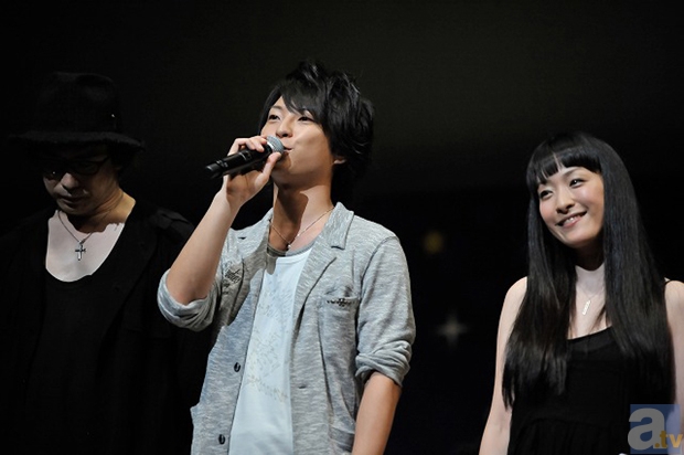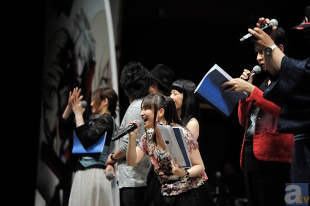 そして最後のコーナーは、イベント限定のシルエットクイズ「闇に喰われたのなーんだ?」。なんとこのコーナーのラストでは、森プロデューサー・橘監督・水島助監督の3人組がシルエットとして登場! シルエットの中で見事なエグザイルダンスを踊り、キャスト陣を翻弄した。