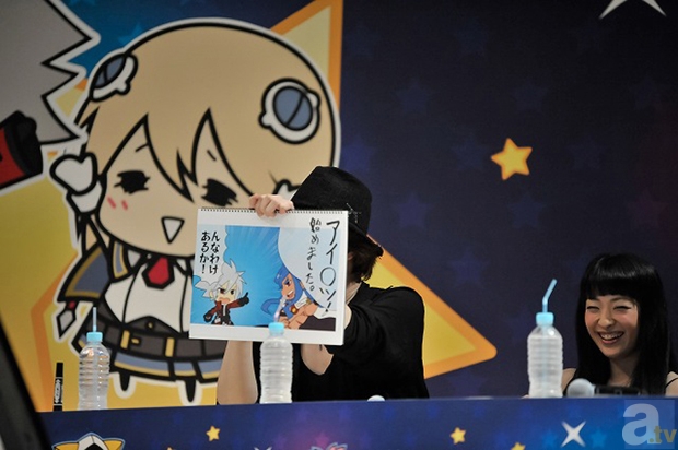 続いては、提示されたお題イラストに台詞を入れる「もしもの1コマブレイブルー」が実施された。毎回収録が行われる度に、「ぶるらじ」スタッフの描き下ろしキャラクターたちを見られる貴重なコーナーかつ、フリップを介すことで一部の出演者の皆さんのフリーダムっぷりが加速するコーナーでもある。