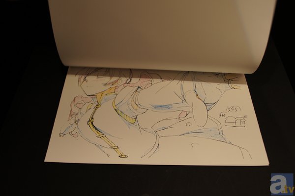 特に注目してほしいのは、めくれる形で設置された“コピー原画の束”だ。パラパラ漫画の要領でめくることで、画面内の動きを手元で再現することができる、ちょっと変わった展示品となっている。原画が手元で動いている様子を体験できる貴重な機会なので、展示会に訪れた際にはぜひチェックしてほしい。