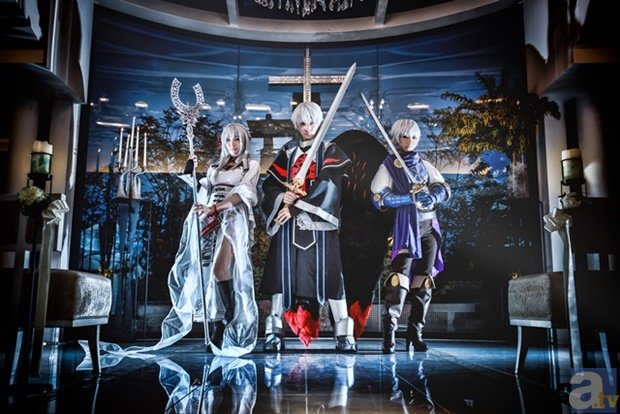 スマートフォン向けチェインシナリオRPG『チェインクロニクル ~絆の新大陸~』と、ラジオ番組「緑川光・今井麻美・内田彩のチェンクロラジオ」のコラボから生まれた、コラボキャラクターのキャラクターソング「Three Hearts」のCD発売を記念して、2月25日(水)にリヒト、ファルベ、ハンフのコスプレ撮影会が行われました。それぞれのキャラクターに扮したのは、動画サイトで活躍する人気踊り手のめろちんさん、人気コスプレイヤーのるしゃさんと火将ロシエルさん。当日は3人の美麗な姿に盛り上がりました。