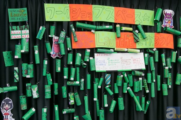 イベントの中盤は、ファンが緑の紙を丸めて作ったさまざまな“Launcher”のなかから、LiSAさんが優秀作品を選ぶコーナー。たくさん集まったLauncherはどれも個性的で、熱いメッセージや上手なイラストが書き込まれていた。LiSAさんは悩みに悩んだあげく、ひとつのLauncherを手にとった。見事選ばれたファンには、LiSAさんからサイン入りB1サイズポスターが贈呈された。