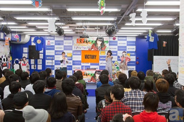 19:30になると、いよいよイベントがスタート。司会者の合図でLiSAさんが登場すると、集まったファンは歓声を上げる。LiSAさんがステージで挨拶をした後、アニメイトのイベントではおなじみ(?)の“くす玉”が登場。「祝・3rdフルアルバム『Launcher』」と書かれたくす玉が割られると、再び大きな拍手が起こった。