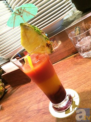 ブラッドオレンジ+マンゴー+アサイーのさっぱりとしたドリンク。オズファミリーのボス・カラミアをイメージしました。