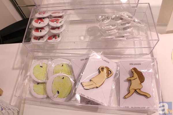 他にも、会場ではオリジナルグッズの販売も行われています。イラストを使用したポストカードをはじめ、イラスト集、ステッカー、缶バッジ、ノート、ブローチなど、小人たちの可愛いグッズが販売されていました。会場にお越しの際はグッズコーナーにも注目です!