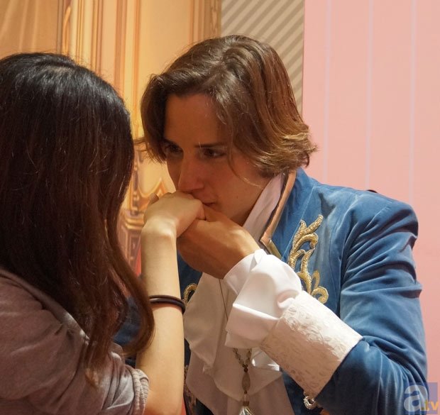 イケメン執事は、お客様のエスコートをするほか、時にはお客様のリクエストに応えて壁ドンをしたり、ひざまずいて、一緒に写真撮影しました。