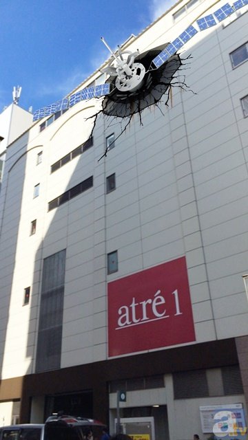 ソフトバンクが配信している周辺情報配信サービスアプリ『ふらっと案内』を使用し、アトレ秋葉原を見ると、なんと建物に人工衛星が激突している様子を観測することができます! さらに、『ふらっと案内』では秋葉原の各地を巡るARラリーが開催されており、ラボメンたちに出会うことができちゃいます! また、朝と夜では違う様子を見ることができるそうなので、大注目!