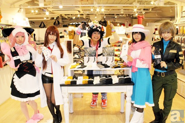 コラボ記念として、「靴下屋アトレ秋葉原」限定で、「ラボメンバッチ」「うーぱ」「ゲルバナ」「世界がヤバイ!!」「未来ガジェット研究所」などをモチーフとした靴下が、数量限定で販売されています! さらに、土・日・祝日限定で「ゲルバナ」「世界がヤバイ!!」「未来ガジェット研究所」の3つのみ、カラーを選択できるカスタマイズサービスも行われていますよ! 店員さんもクリスティーナ&オカリンの衣装でお出迎えしてくれる日もあるとのこと! イベント期間中にしか手に入らない、限定靴下をゲットすべし!