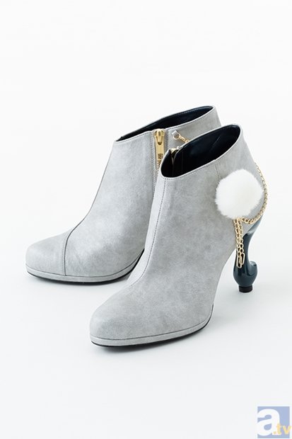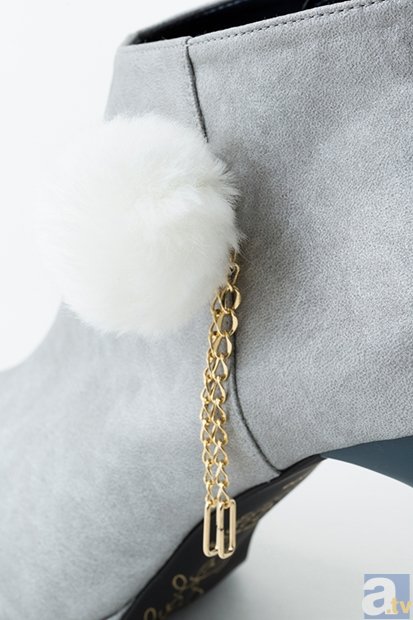 鶴丸国永をイメージしたデザインのブーティです。本体は品のいいシルバーで、足元を彩ってくれます。鶴丸の着物のような、ゴールドのチェーンやポンポンを装飾したデザイン!ヒールは鶴丸の鎧をイメージした深く濃いブルー。鶴丸の雰囲気を余すことなく詰め込みました。