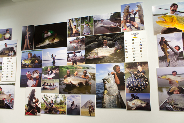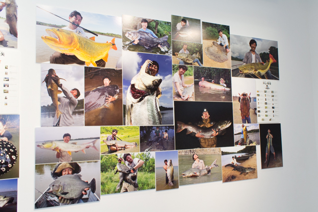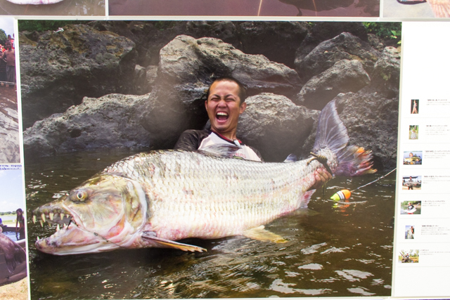 展示会には、世界各国で怪魚とツーショットしている武石憲貴氏、小塚拓矢氏、沖山朝俊氏の写真がずらりと並んでいます!