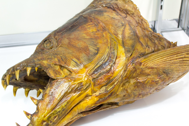 また、今までに釣り上げてきた怪魚の剥製はもちろん、実際に使用したリールやルアーなど、多岐に渡って展示されています!