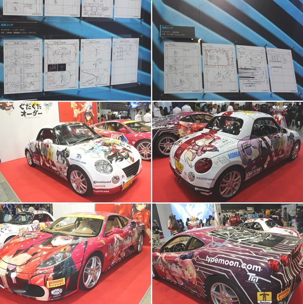 他にも、宝具使用時のアニメーション原画や、AJ2016のために新たに制作された、『Fate/ぐだぐだオーダー』痛車が展示中。描かれたイラストは、総勢15名ものキャラクターを経験値先生が新たに描き下ろした非常に豪華なものとなっています。昨年秋のマチアソビで公開された武内崇先生の描き下ろしフェラーリ痛車と並んだ光景はなかなか壮観です。周辺には凜やモードレッドのコスプレや、経験値先生描き下ろしの「ぐだぐだ痛車オーダー」が読める「プラスポ」の配布も行われており、ぐだぐだ痛車誕生の経緯も読むことができます。