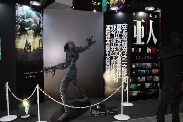 ▲亜人コーナーでは等身大亜人フィギュアの展示に加えて、亜人になれるお面を配布。ほしい方は真っ黒な亜人コスプレをしたスタッフさんを探しましょう。