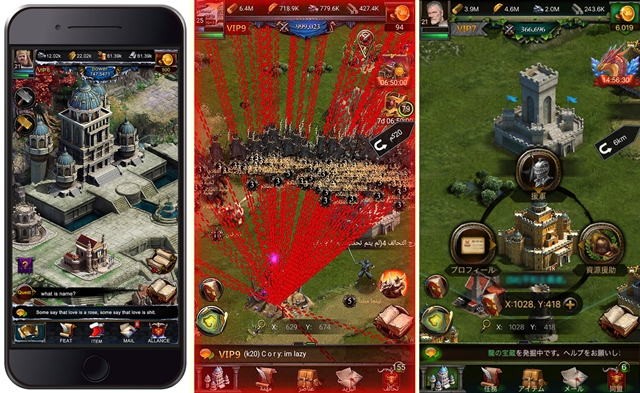 全世界で6500万超ダウンロードを記録した戦略型MMORPG(多人数参加型のオンラインRPG)。プレーヤーはキングになって国と軍隊を作り、他国に攻め入り帝国統一を目指す。世界中のキングとリアルタイム対戦ができるだけでなく、自動翻訳機能付きのチャットシステムを利用して同盟を組むことで、強大な帝国に立ち向かったり、援軍を呼んで助けてもらうといった多彩な戦いができるのが特徴。