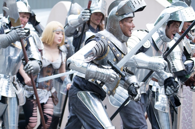 住宅街を歩く中年サラリーマン。―そこに突如、西洋の甲冑をまとった戦士たちが襲い掛かる! 踵を返して逃げ惑う中年男! 追い詰められた先に現れたのは――東洋の戦士たち! 驚きを隠せない西洋軍。勝ち誇るおじさん。さて、この後、どうなるっ!!