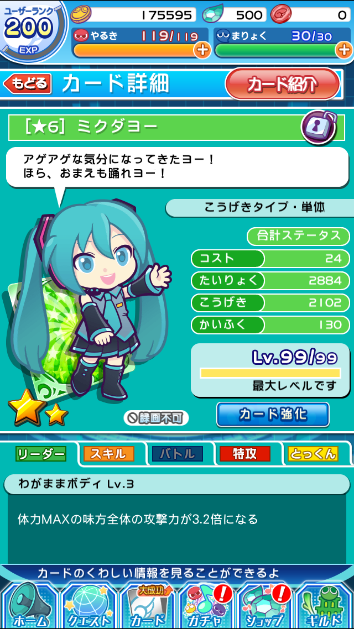 「サイリウム」が手に入りやすくなる「ボーナスタイム」や大量に獲得できる「イベントチャンスボス」も出現します。たくさん稼いでアイテムをゲットし、序盤で手に入る星4の「ミクダヨー」を星6にへんしんさせてあげましょう!