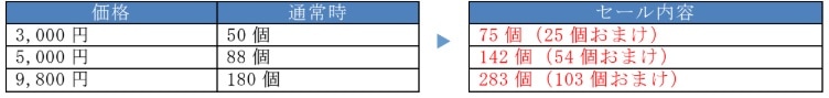 ※セールボーナスの表示が無い場合、おまけが反映されない場合があります。